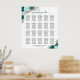 20 Table Elegant Teal Floral Wedding Seating Chart