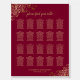 This elegant and stylish wedding seating chart features a gold script calligraphy title on a maroon, burgundy, or wine red colored background with ornate golden faux foil curls and swirls in the corners. The traditional layout has room for 200 guests at 20 tables with 10 seats per table, and the names of the couple and wedding date below. Simple, classy, and chic this seating chart will bring sophistication and grace to your wedding reception while making it easy for your guests find their tables.