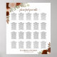 This rustic autumn floral 20 table wedding seating chart has space for 200 guests with 10 seats per table. The hand painted watercolor design features rust orange and coral peach roses, with sprigs of fall foliage, and a burnt umber colored script calligraphy title that reads "please find your table." There is space for the names of the couple and wedding date below. Wonderful way to add beauty and elegance to your wedding reception while making it easy for your guests to find their seats.