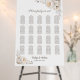 This elegant white floral seating chart will help your guests find their table. It is suitable for a wedding with 20 tables and up to 200 guests.
