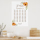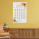 This yellow and pink floral seating chart will help your guests find their table. It is suitable for a wedding with 20 tables and up to 200 guests.