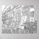 Huge matte finish poster is suitable for coloring. The image is a sketch rendering of an original photograph taken in Nice France. The other sizes are also available, standard coloring page, postcard and greeting card.