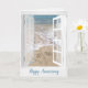 Beach hearts in the sand with frothy ocean surf and open window view for 20th wedding anniversary