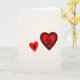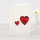This design shows two red paper hearts set on a cream-white background with tiny pale pink dots. The larger heart sits to the right and has a black lace-like border, with the number “20” printed in dark lettering in the center. To the left is a smaller red heart with a simple edge, holding a black silhouette of a couple hugging closely. The couple’s heads lean toward each other, and their pose feels calm and devoted. The layout is slightly uneven but still balanced, which makes your eyes move naturally from the couple to the “20.” With the soft lighting and the gentle dotted backdrop, the card feels like a quiet nod to a long relationship and the time you’ve shared ❤️. It’s a meaningful choice for an anniversary or Valentine’s Day because it says “we’re still here, still close” without needing many words 🥰. Wishing you a sweet moment of sharing Valentine’s Day sentiments.