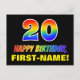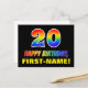 20th Birthday: Bold, Fun, Simple, Rainbow 20 Postcard