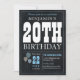 20th Birthday Chalkboard Blue Balloon Rustic Chic Invitation