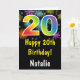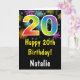 20th Birthday Colorful Rainbow Fireworks Card with personalized name. For further customization, please click the "Customize it" button and use our design tool to modify this template.