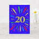An explosive 20th birthday card! What a wonderful way to send birthday greetings. The number 20 in bright yellow with an explosion of bright colors and stars.
