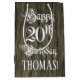 20th Birthday: Fancy, Faux Wood Look + Custom Name Medium Gift Bag