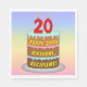 This colorful and joyful birthday-themed paper napkin design features a cartoon-style depiction of a three-tier birthday cake having number-shaped candles on top showing the age “20“, along with the message “HAPPY 20TH BIRTHDAY,”, and a personalized recipient name. The background features a multicolored pastel rainbow spectrum inspired gradient pattern. Paper napkins like these might be used at a party for somebody who is celebrating their twentieth birthday. [~Z0000623]