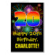 The front of this colorful, cheerful, and exciting birthday themed greeting card design features a large number “20” having a rainbow spectrum gradient inspired pattern. It also features the message “Happy 20th Birthday,”, and a personalized recipient name. The front additionally has an exciting and colorful background pattern inspired by bursting celebratory fireworks. The inside features a customized birthday greeting message, or could perhaps be cleared and left blank if a message is to be written by hand instead. A customizable birthday card like this might be a fun way to acknowledge somebody’s twentieth birthday. [~Z0000526]