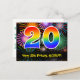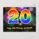 20th Birthday – Fun Fireworks Pattern + Rainbow 20 Postcard