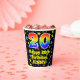 This cheerful and fun birthday themed paper cup design features a large number “20” having a rainbow spectrum gradient inspired pattern. It also features the message “Happy 20th Birthday,”, and a customizable name. The background features a multicolored pattern featuring many star shapes with different colors and sizes. Colorful, vibrant paper cups like this might be fun to have at a birthday celebration/party being held in celebration of somebody’s twentieth birthday. [~Z0000540]