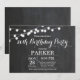 20th Birthday Invitation with String Lights Chalkboard Background. 13th 15th 16th 18th 21st 30th 40th 50th 60th 70th 80th 90th 100th, Any age. For further customization, please click the "Customize it" button and use our design tool to modify this template.