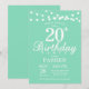 Having your 20th Birthday Invitation Mint Green match the theme of your party is a great detail that your guests will appreciate. The thoughtfulness of a consistent party theme is often appreciated and can show your guests that you can host a cohesive event.