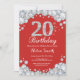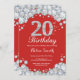 20th Birthday Invitation Red and Silver Diamond