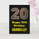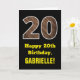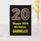 20th Birthday: Name, Faux Wood Grain Pattern "20" Card