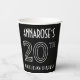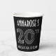 This stylish Roaring Twenties era inspired art deco style birthday-themed paper cup design features a personalized name, plus the message “20TH BIRTHDAY PARTY!”. The number “20TH” has a fancy geometric lined appearance. Paper cups like these might be used at a birthday party held in celebration of somebody’s twentieth birthday, or some other 20th event. [~Z0000658]