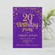 You can pick to download your 20th Birthday Party Purple Gold Invitation from 4 file types: PNG, JPG, Standard PDF, and Print PDF. These 4 file formats have been selected so they cover all your inviting needs. PNG and JPG are great for sending your invitation digitally and PDF and Print PDF are great if you want to print your invitation yourself.