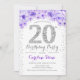 20th Birthday Party - White Silver Purple Invitation