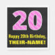 20th Birthday: Pink Stripes and Hearts "20" + Name Napkins