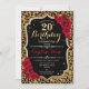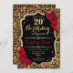 20th Birthday - Red Roses Leopard Print Invitation