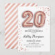 20th birthday party invitation. Elegant design in faux glitter rose gold. Invite card features rose gold number 20 balloons and script font. Perfect for a stylish bday celebration. Message me if you need custom age.