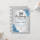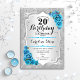 20th Birthday - Silver Stripes Icy Blue Roses Invitation