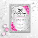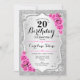 20th Birthday - Silver Stripes Pink Roses Invitation