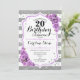 20th Birthday - Silver White Stripes Purple Roses Invitation