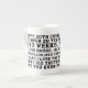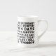 This mug is imprinted with a Bach Solos Suite for Cello. It was purchased as a thank you gift for a professional cellist friend who often performs this work. The cup is made of a high-grade ceramic and is fairly light. The walls are not too thick and it is a small to medium size. It's well finished, has a high-gloss glaze, and looks very elegant. The Bach Solo Suite score on the example I received was clear and had high contrast. Even though the staffs were small, the music was easy to read. The cellist who received this cup immediately knew what the music was as soon as she set eyes on it.