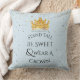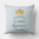 20 x 20 inch pillow shown in pastel Blue. Has fun petite Golden stars with Gold colored crown prints on top with text forming the shape of a pineapple. Text reads: Be A Pineapple, Stand Tall, Be Sweet & Wear A Crown. On back is the same petite golden stars along with one very LARGE Golden Crown print at base.