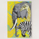 Elephant, giraffe and zebra on a jungle background. Everything has been colored in yellow, blue, gray, black and white. Great puzzle for anyone who loves exotic animals. Really great puzzle to put together with someone who's living with the most typical form of color blindness.