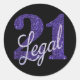 21 and Legal | Purple Faux Glitter 21st Birthday Classic Round Sticker