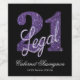 21 and Legal | Purple Faux Glitter 21st Birthday Wine Label
