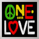 One Love! Cheerful and colorful red, green & gold text, “ONE LOVE” including a PEACE SIGN and HEART. This image features a quote from the King of Reggae, and symbolizes the lively music, rhythm & vibe that identifies Roots/Reggae music genre, Reggae culture, Jamaica & the Caribbean Island.