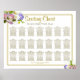 This beautiful 21 table pastel floral wedding seating chart will make it easy for your guests to find their assigned tables at your reception. Features gold text on a white background with a gold offset squares border and a beautiful spring pastel bouquet of flowers including pink roses, white calla lilies & orchids, and light purple or lavender hydrangea. The text includes the name of the couple and wedding date, and is fully customizable.