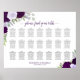 This beautiful 21-table wedding seating chart will bring rustic elegance and style to your special day. With space for 210 guests (10 seats per table,) this traditional layout will make it easy for your guests to find their assigned tables, while adding an air of beauty, grace and charm. The rustic boho chic floral design boasts hand-painted watercolor roses in shades of royal purple, lavender, and plum, complemented by sprigs of eucalyptus leaves and garden greenery. There is an elegant script calligraphy title, and the names of the couple and wedding date appear at the bottom.