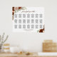 This autumn floral 21 table wedding seating chart features a traditional layout with room for 210 people with 10 seats per table. The rustic boho chic design features hand painted watercolor roses in shades of rust orange and coral peach with an elegant burnt umber colored script calligraphy title. The names of the couple and wedding date are displayed at the bottom. Beautiful way to add elegance and class to your wedding reception while making it easy for your guests to find their seats.