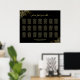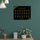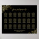 This beautiful seating chart will help your guests find their assigned tables at your wedding reception. It features a simple yet elegant design with gold text on a black background. The title is written in script calligraphy lettering and reads: please find your table. The chart is decorated with a frilly floral faux foil gold filigree in the corners. Contains seating assignments for 21 tables at 10 guests per table or 210 guests.