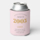 Celebrate a milestone 21st birthday with this chic, personalized can cooler! Featuring a sophisticated pink and grey design and the iconic 'Born in 2005' year, it's the perfect gift for keeping drinks cold in style. Customize it with the recipient's name for a unique keepsake they'll cherish. Ideal for birthday parties, celebrations, or a special souvenir.