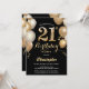 21st Birthday Black and Gold Balloons Confetti Invitation