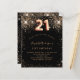 A modern, stylish and glamorous invitation for a 21st birthday party. A black background decorated with faux glitter. The name is written with a modern golden colored hand lettered style script. Personalize and add your party details. Number 21 is written with a balloon style font, script.