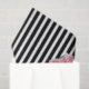 Classic slim black and white vertical stripes as background. With girly, feminine and romantic pink roses as decoration. Perfect for an elegant 21st birthday party for her. A white and black frame with templates for name, age and a date. Age number 21 in pink, name and date in black. The name is written with a hand-lettered style script.