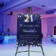 A welcome board for a 21st birthday party. A navy blue background with elegant faux silver stars. The blue color is uneven. Personalize and add a name and text. White letters.
