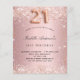 For an elegant 21st birthday party. A blush pink gradient background. Decorated with rose gold faux glitter dust. Personalize and add a name and party details. The name is written with a hand lettered style script. Number 21 is written with a balloon style font.