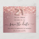 A girly and trendy Save the Date card for a 21st birthday party. Blush pink gradient background decorated with rose confetti. Personalize and add a date and name/text. The text: Save the Date is written with a large trendy hand lettered style script with swashes. Number 21 with a balloon style font.
