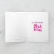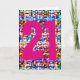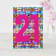 Bright and loud 21st birthday card with pink 21. Fun and vibrant card.