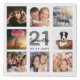 A unique 21st birthday gift or keepsake, celebrating her life with a collage of 8 of your photos. Add images of her family, friends, pets, hobbies or dream travel destination. Personalize and add a name, age 21 and a date. Gray and black colored letters. A chic white background. This canvas is also available in our store with black or rose gold colored background.