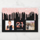 For a fun, glamorous 21st birthday party. Classic black background color, decorated with faux rose gold glitter drips, paint dripping look. Personalize and add a name, age 21 and a date. Date of birth or the date of the party. White and rose gold colored letters. Add 2 - two of your own photos of herm her friends, family, kids, dream travel destination, kids, boyfriend/husband.